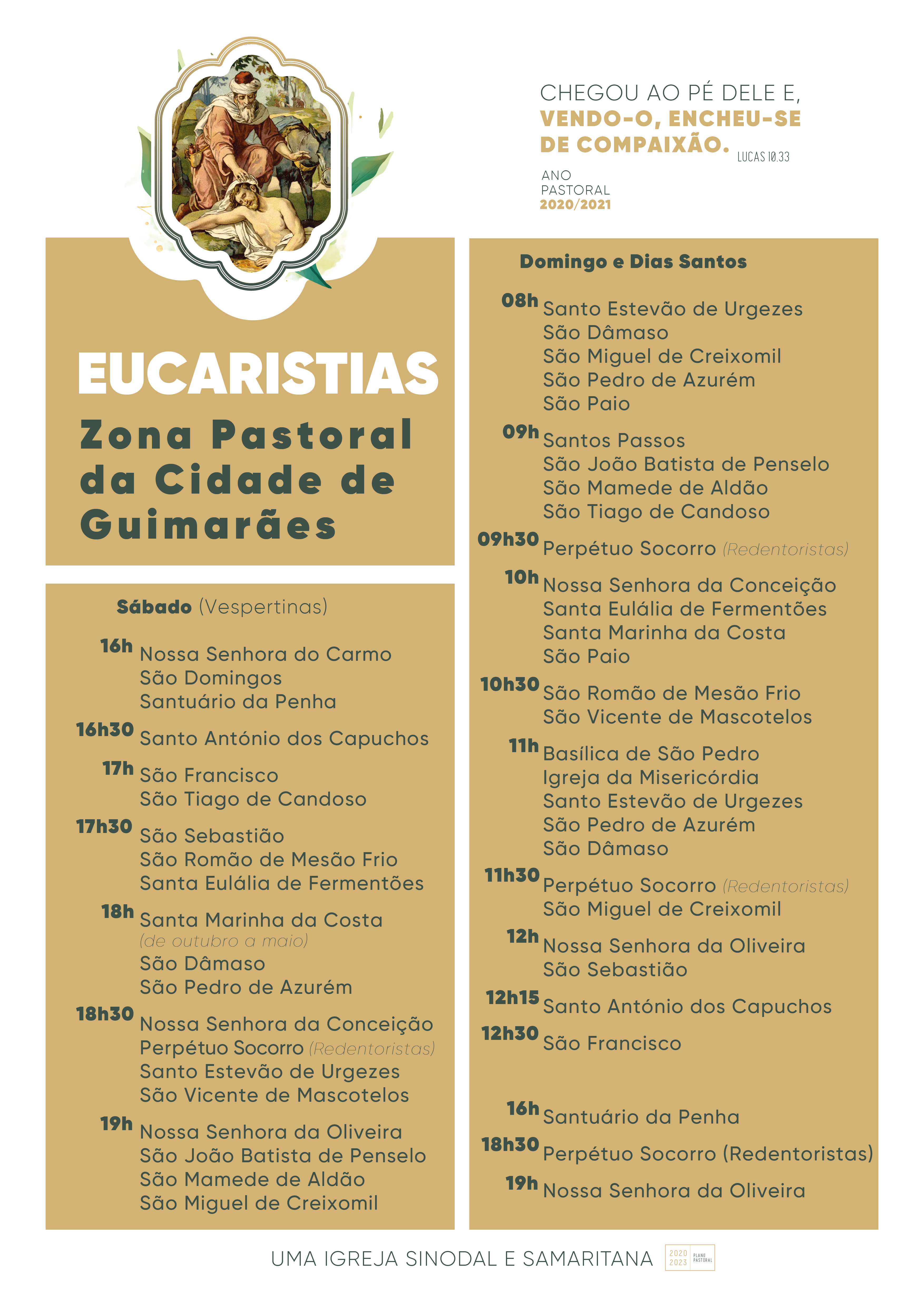 Horários das Eucaristias na Zona Pastoral da Cidade