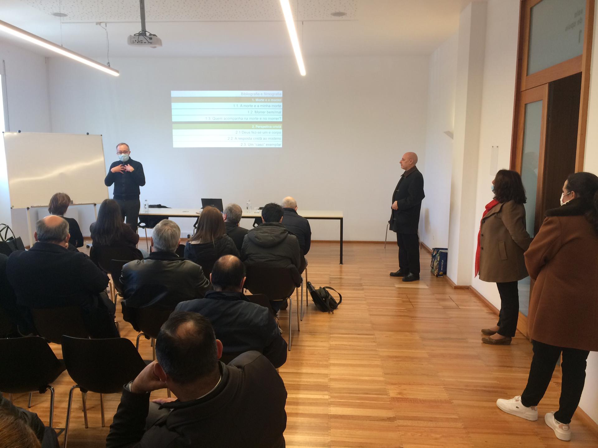 Ao longo desta manhã de formação, foram abordadas três temáticas para valorizar o serviço humano, cristão e litúrgico que é levado a cabo pelas agências funerárias. A manhã começou com o tema das normas canónicas para os funerais cristãos, orientado pelo cónego Joaquim Félix. Seguiu-se a abordagem da dimensão simbólica da Liturgia das Exéquias, aprofundada por D. Bernardino Costa. Para concluir a manhã de formação, o padre Jorge Vilaça abordou a dimensão antropológica da morte e do morrer, a partir da perspetiva cristã.