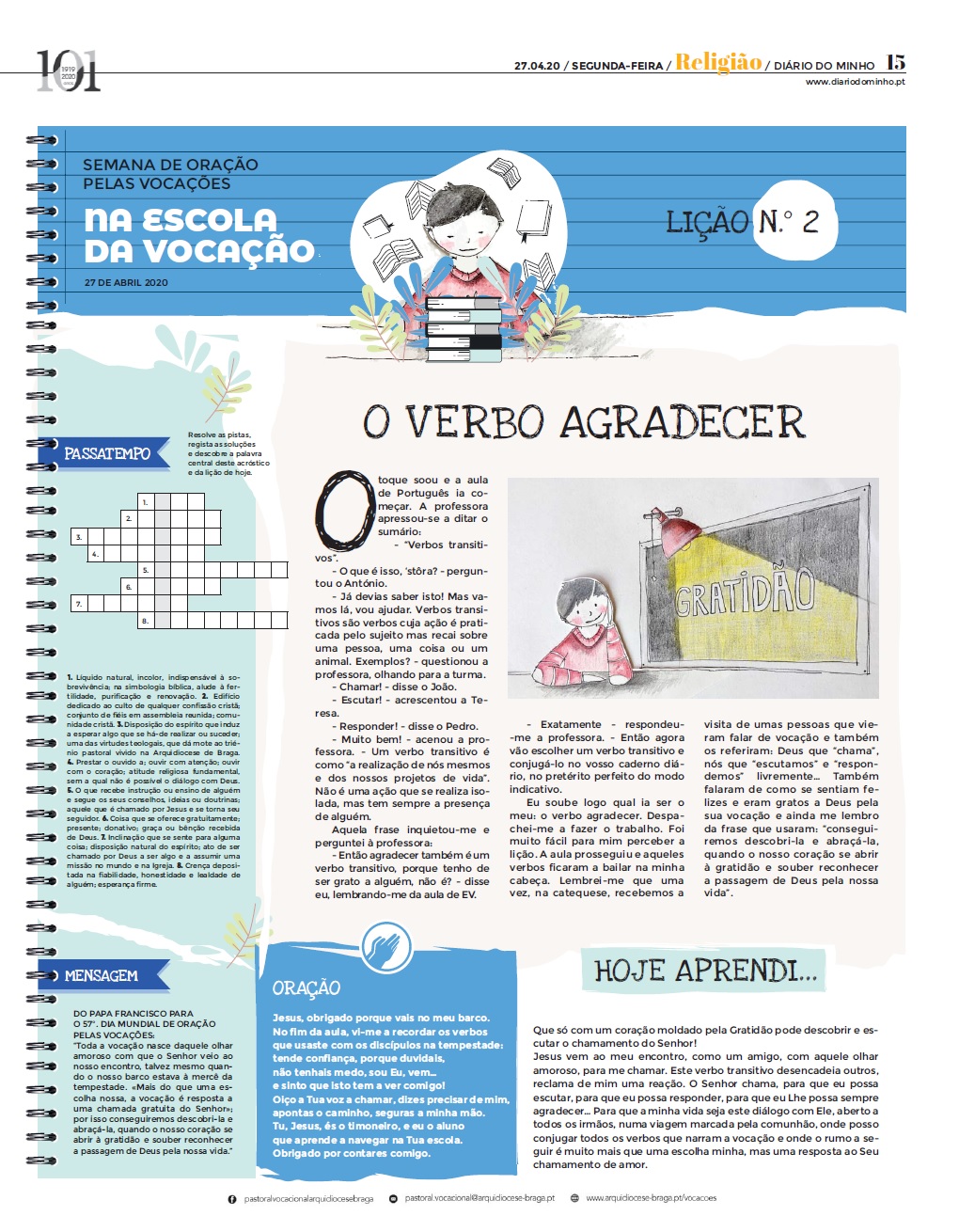 Que só um coração moldado pela Gratidão pode descobrir e escutar o chamamento do Senhor!
