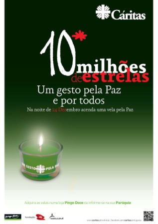21 novembro 2016 Notícia A. "10 Milhões de Estrelas - Um gesto pela Paz" Campanha é organizada pela Cáritas Portuguesa e pretende sensibilizar cidadãos para valores como a Paz, a Solidariedade e a Reconciliação. Fundos angariados ajudam causas locais e internacionais.