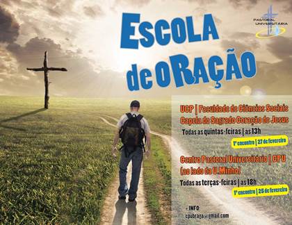 A Pastoral Universitária de Braga organiza, a partir do dia 25 de Fevereiro, uma Escola de Oração, com encontros semanais no Centro Pastoral Universitário da UM e na Faculdade de Ciências Sociais da UCP.