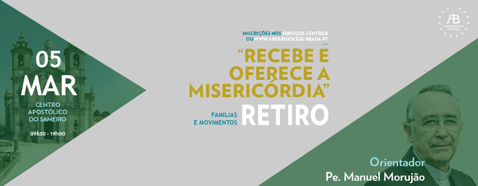 Realiza-se no próximo dia 5 de Março, um Retiro para casais da pastoral familiar, dos movimentos ou instituições de alguma forma relacionados com a Família, na Arquidiocese de Braga. As reflexões serão orientadas pelo Padre Manuel Morujão, na sua qualidade de Missionário da Misericórdia.