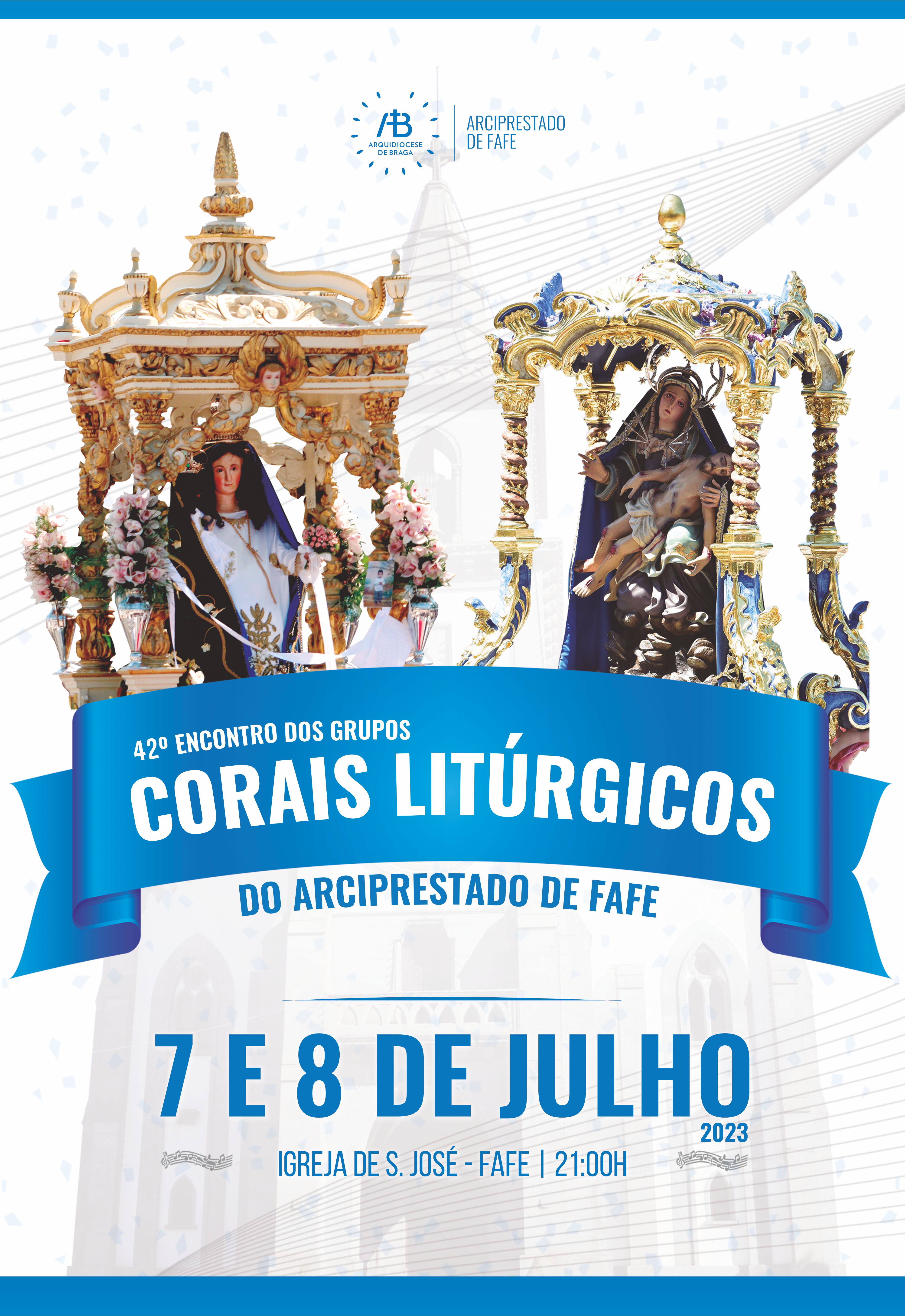 O 42º Encontro de Coros Litúrgicos do Arciprestado de Fafe decorre na sexta e sábado, dias 7 e 8 de julho, às 21h, na Igreja Nova. Participam 12 grupos corais de diferentes paróquias do arciprestado, sendo que 7 atuam na sexta-feira e 5 no sábado.