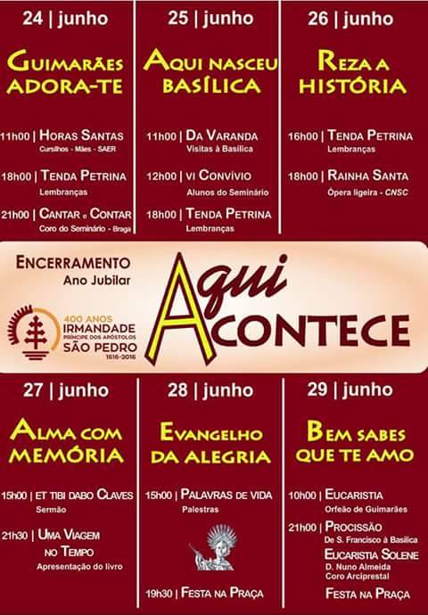 Na reta final das comemorações jubilares dos 400 ANOS da Irmandade do Príncipe dos Apóstolos, São Pedro, o programa deste dia inclui: