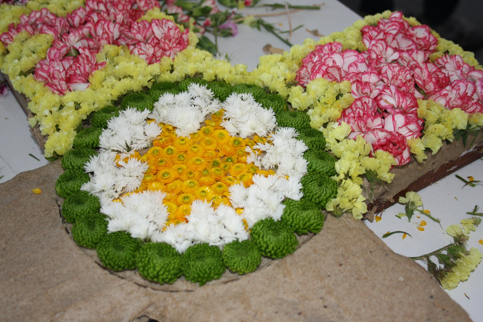 O dia de sábado é vivido nas casas das 16 famílias que acolhem as 16 cruzes e as suas mordomas que, através do trabalho exímio pétala a pétala, asseiam as cruzes de madeira transformando-as em verdadeira obras de arte viva.