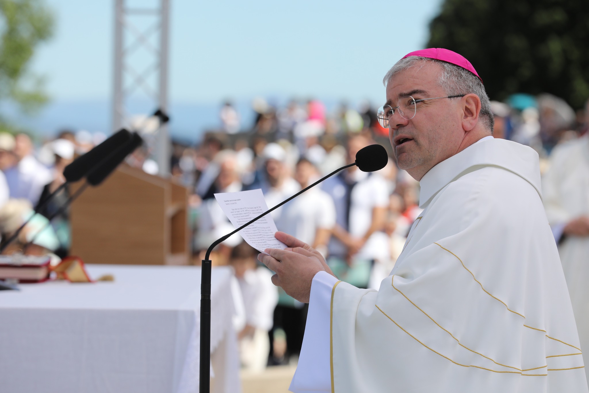 Neste momento, quero saudar cordialmente o nosso estimado Cardeal José Tolentino de Mendonça, o enviado especial do querido Papa Francisco; o Senhor Núncio Apostólico, os Cardeais, Arcebispos e Bispos da Conferência Episcopal Portuguesa, com os delegados diocesanos a este 5º Congresso Eucarístico Nacional; os Presbíteros, Diáconos, Pessoas consagradas; as autoridades civis, militares, académicas; a Confraria do Sameiro e todos os movimentos católicos e voluntários que organizaram esta peregrinação.