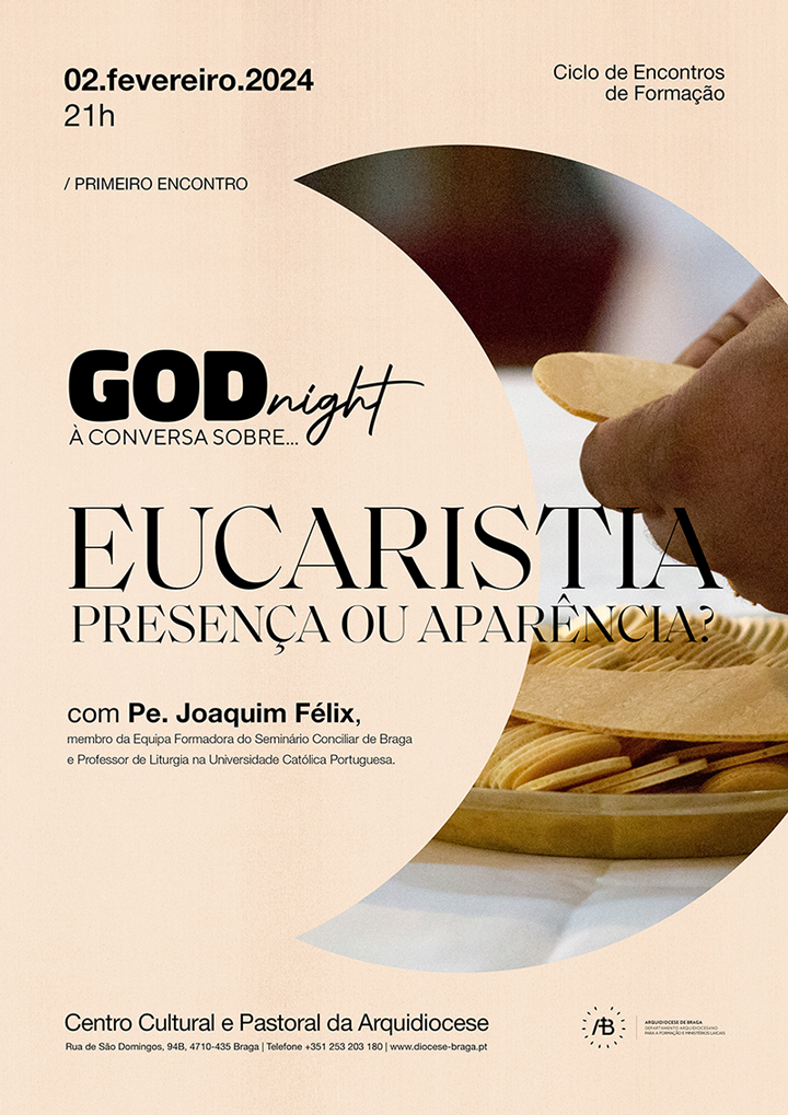 Divulgação 26 janeiro 2024 Notícia A. O “GODnigh: à conversa sobre…” está de volta em 2024 A conversa terá como pano de fundo a “Eucaristia: presença ou aparência”.