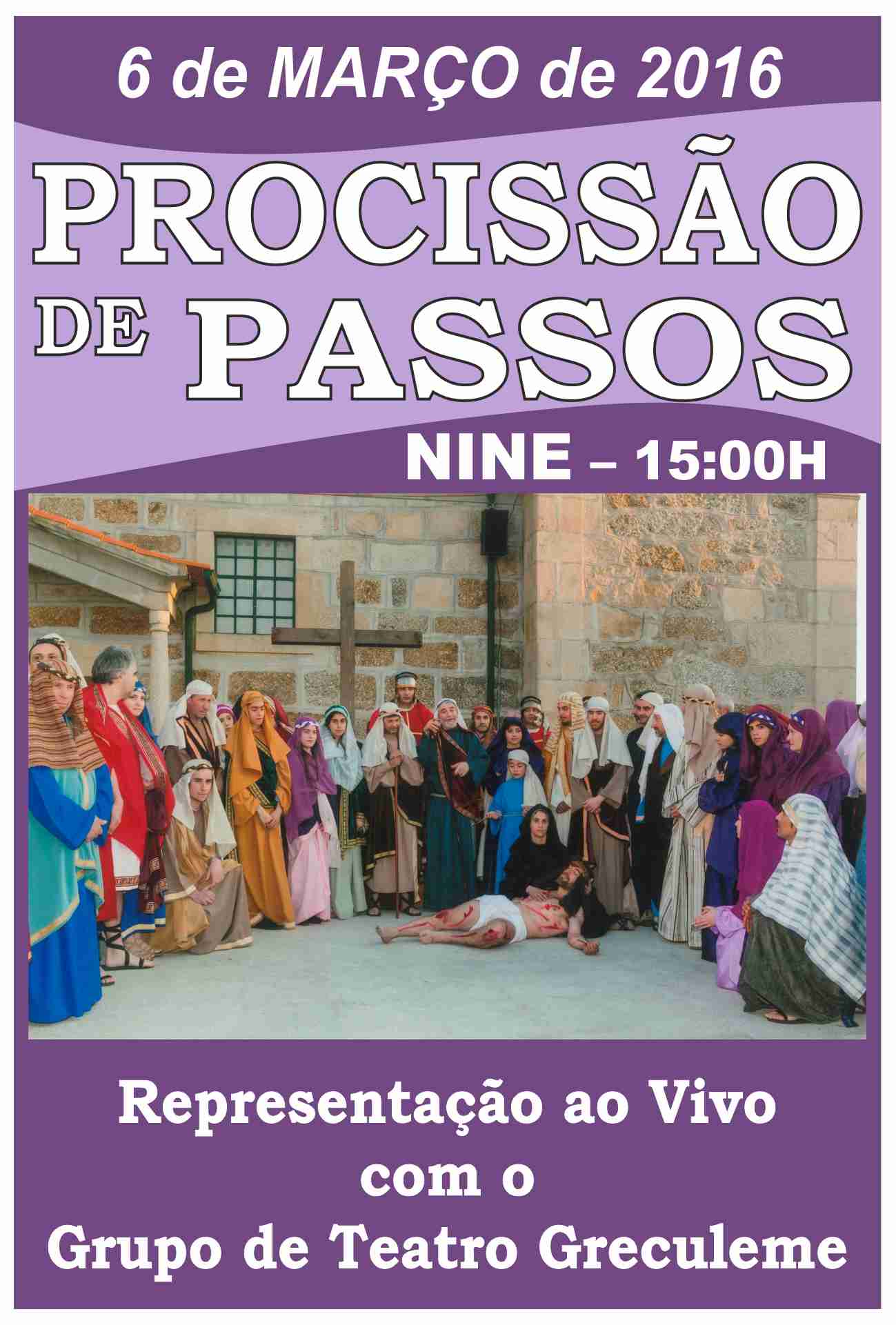 2 março 2016 Notícia A. Paróquia de Nine vive solenidades do Senhor dos Passos Celebrações começam no Sábado, dia 05, às 19h30, com a missa vespertina e a procissão de velas com o andor de Nossa Senhora das Dores a sair da Igreja Paroquial.
