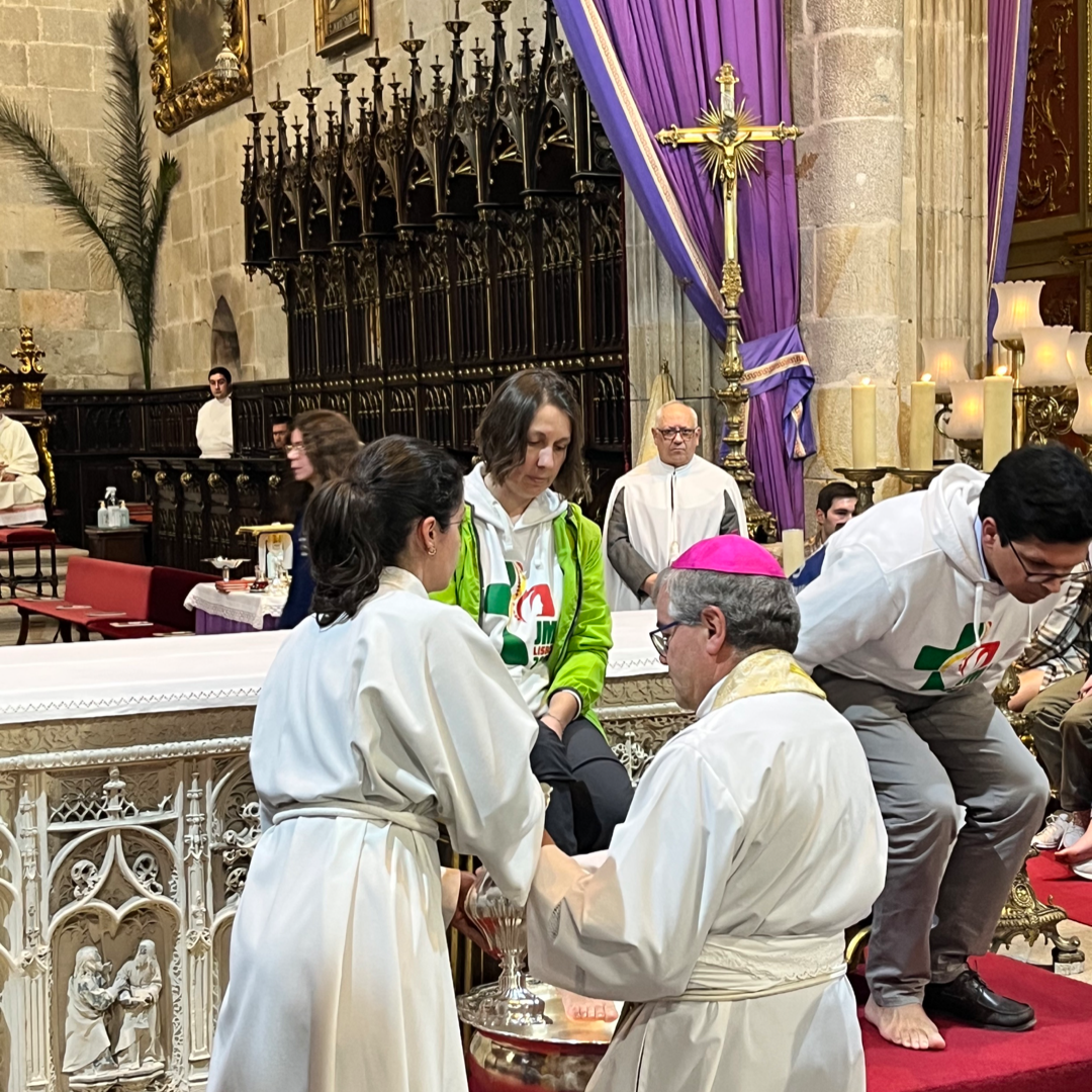 Hoje, 14 jovens delegados dos 14 Comité organizador do Arciprestados da nossa Arquidiocese nos dinamismos admiráveis da Jornada Mundial da Juventude, deixaram-se lavar os pés por mim. Os discípulos deixaram-se lavar os pés pelo Mestre. Este gesto não é fácil, pois significa deixar que a Graça entre em nós e deixar que a cruz atue em nós.