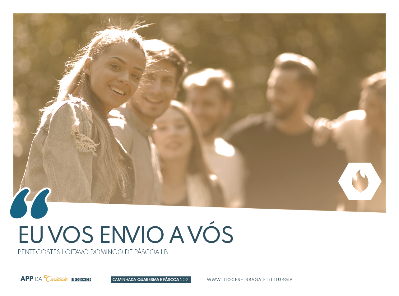Abrir a APP da Caridade e ver a língua de fogo, símbolo do Espírito Santo, que impulsiona para a missão e para dar testemunho deste Deus amor, que cuida de todos com os seus dons e nos torna cuidadores uns dos outros.
