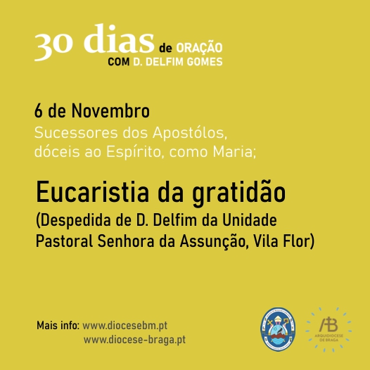 Domingo, 6 de novembro - Sucessores dos Apóstolos, dóceis ao Espírito, como Maria; Eucaristia da gratidão (Despedida de D. Delfim da UP Senhora da Assunção).