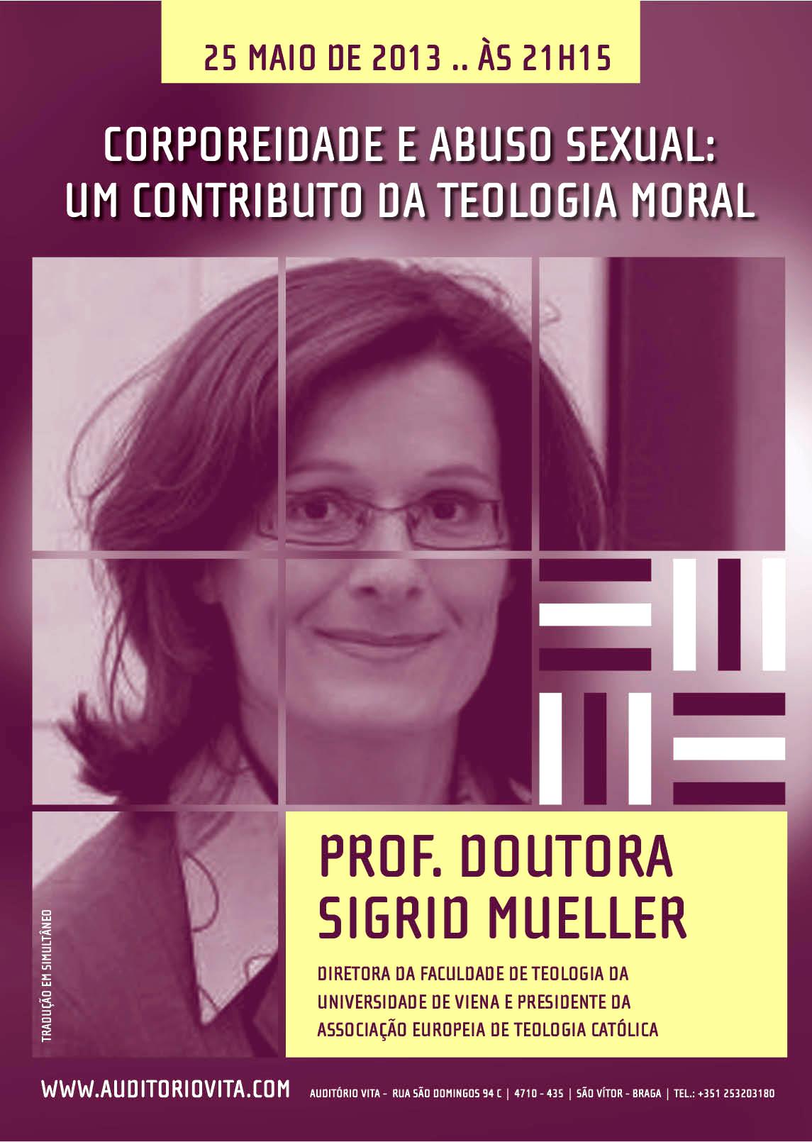 Hoje, dia 25 de Maio, pelas 21h15, o Auditório Vita, acolhe Sigrid Mueller, diretora da Faculdade de Teologia de Viena e presidente da Associação Europeia de Teologia Católica, para uma conferência sobre a temática "Corporeidade e abuso sexual: um contrib
