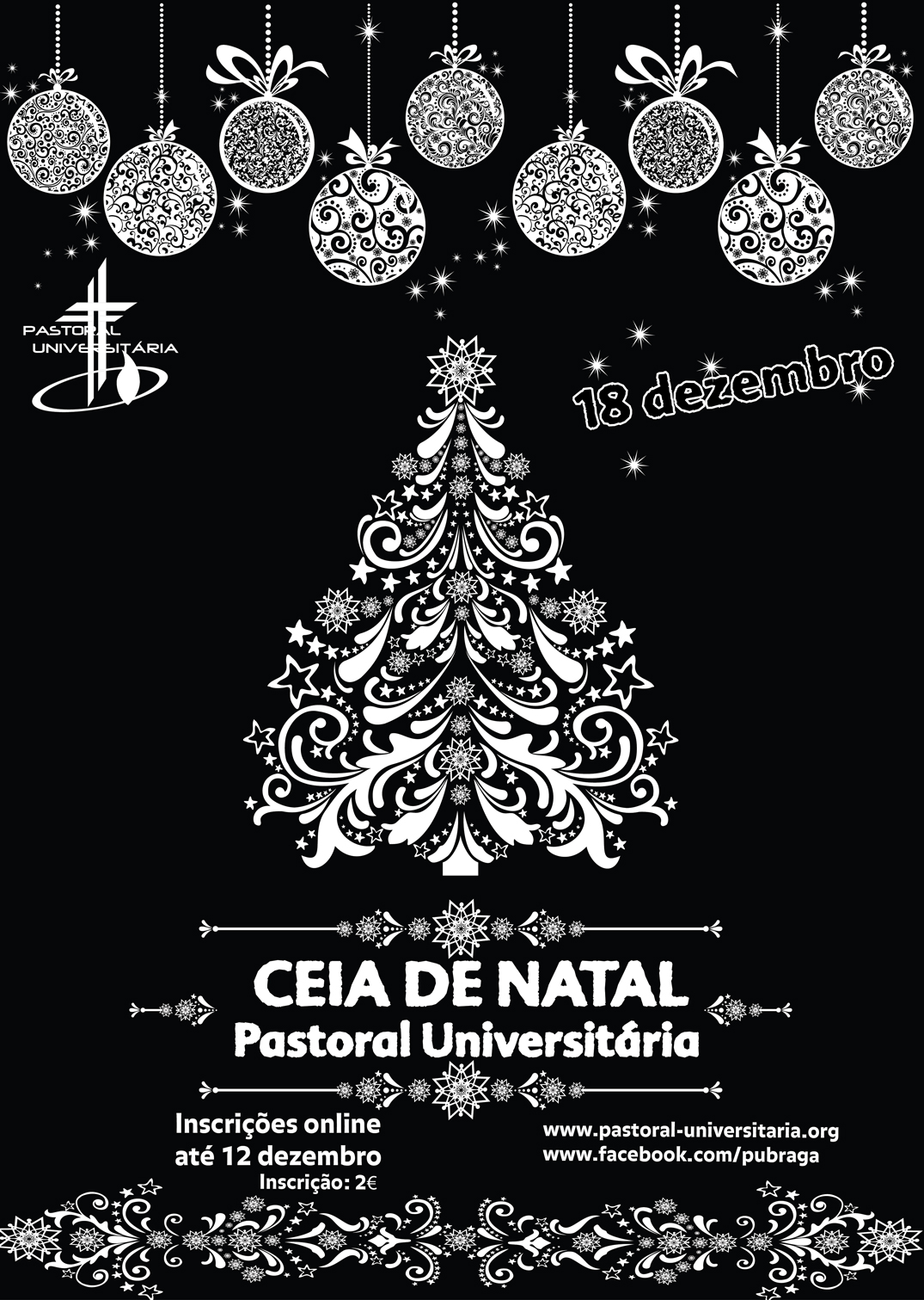 A Pastoral Universitária de Braga organiza, dia 18 de dezembro, a sua tradicional Ceia de Natal. Será uma noite festiva, de alegria e de convívio fraterno. O convite está aberto a alunos e professores. A inscrição poderá ser feita on-line a partir do site da pastoral universitária, até ao dia 12 de dezembro. A ceia de Natal tem um custo simbólico de 2€.