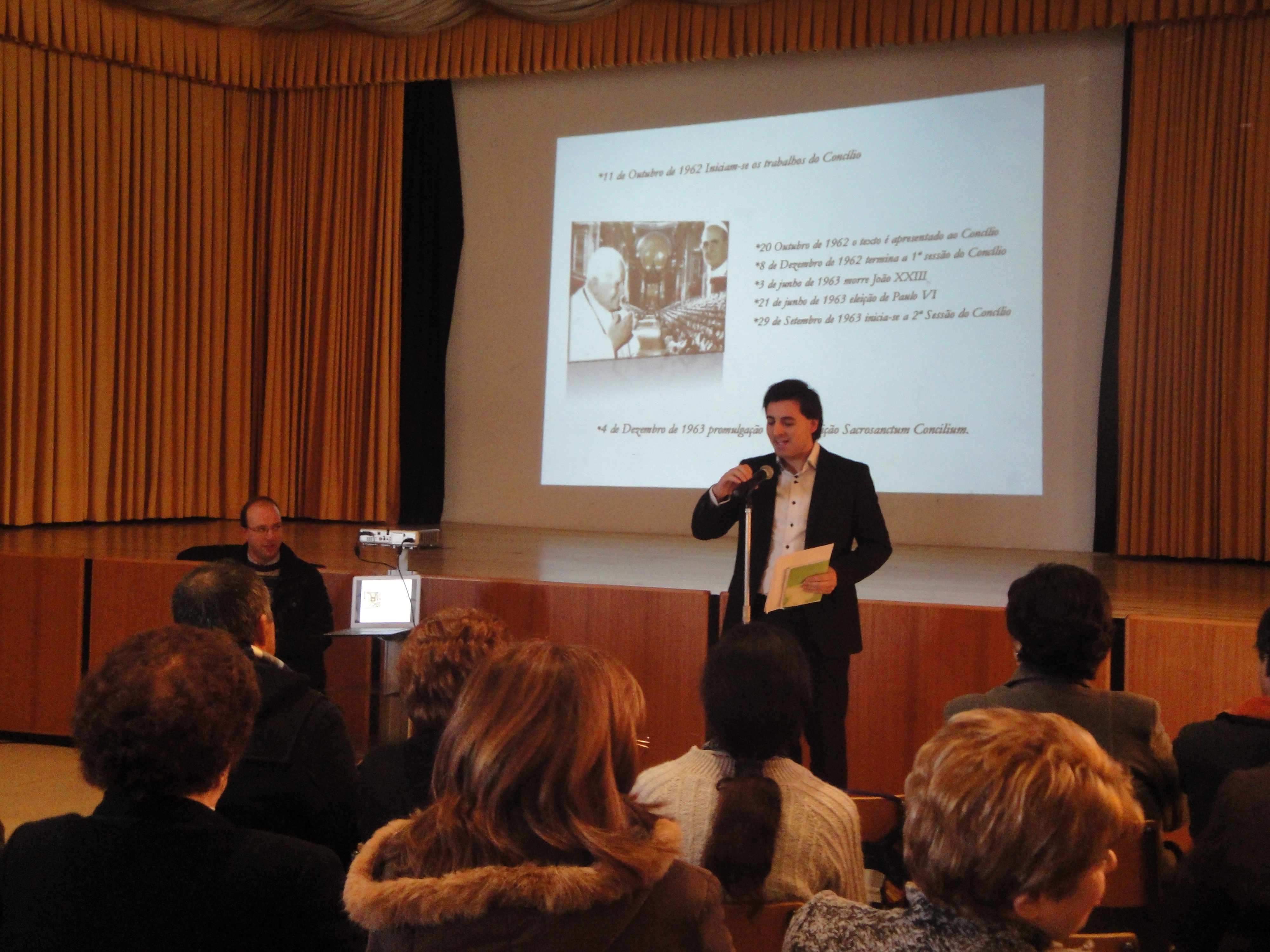 Assim, a primeira parte da manhã esteve a cargo do Diácono Nuno Castro, que centrou a sua apresentação num dos documentos emanados do Concílio Vaticano II, a Constituição Sacrossanctum Concilium, por ser precisamente este o documento escolhido pela Arquidiocese de Braga para melhor ajudar a viver este ano dedicado à temática da “Fé Celebrada”.