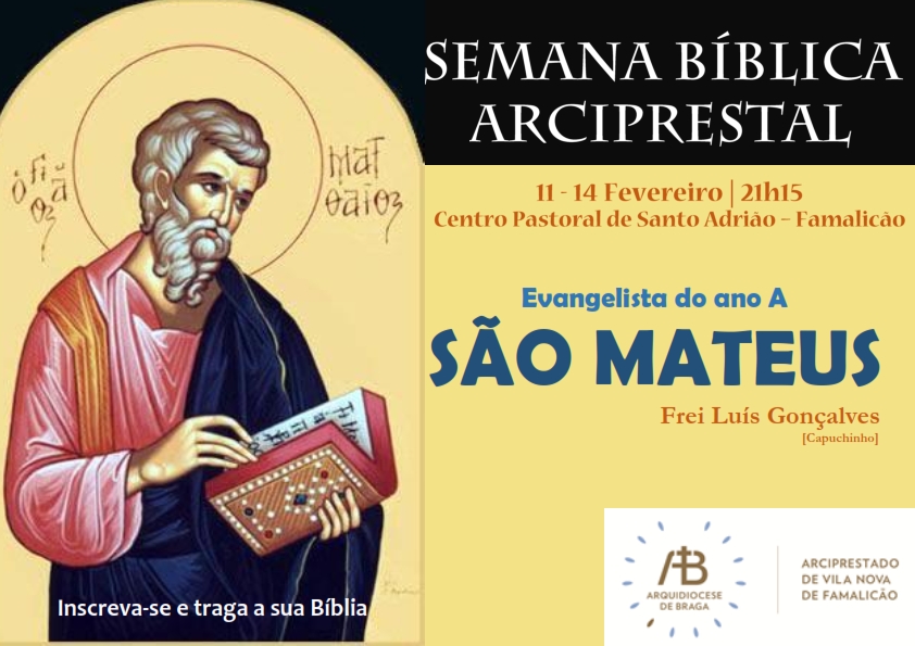 Em pleno “Ano Litúrgico”, dedicado por toda a Arquidiocese de Braga à temática da “Fé Celebrada”, o Arciprestado de V. N. de Famalicão promove uma Semana Bíblica, sendo, desta feita, orientada pelo Frade Capuchinho, Frei Luís Gonçalves. O tema proposto é “S. Mateus, o Evangelistas do Ano A”.