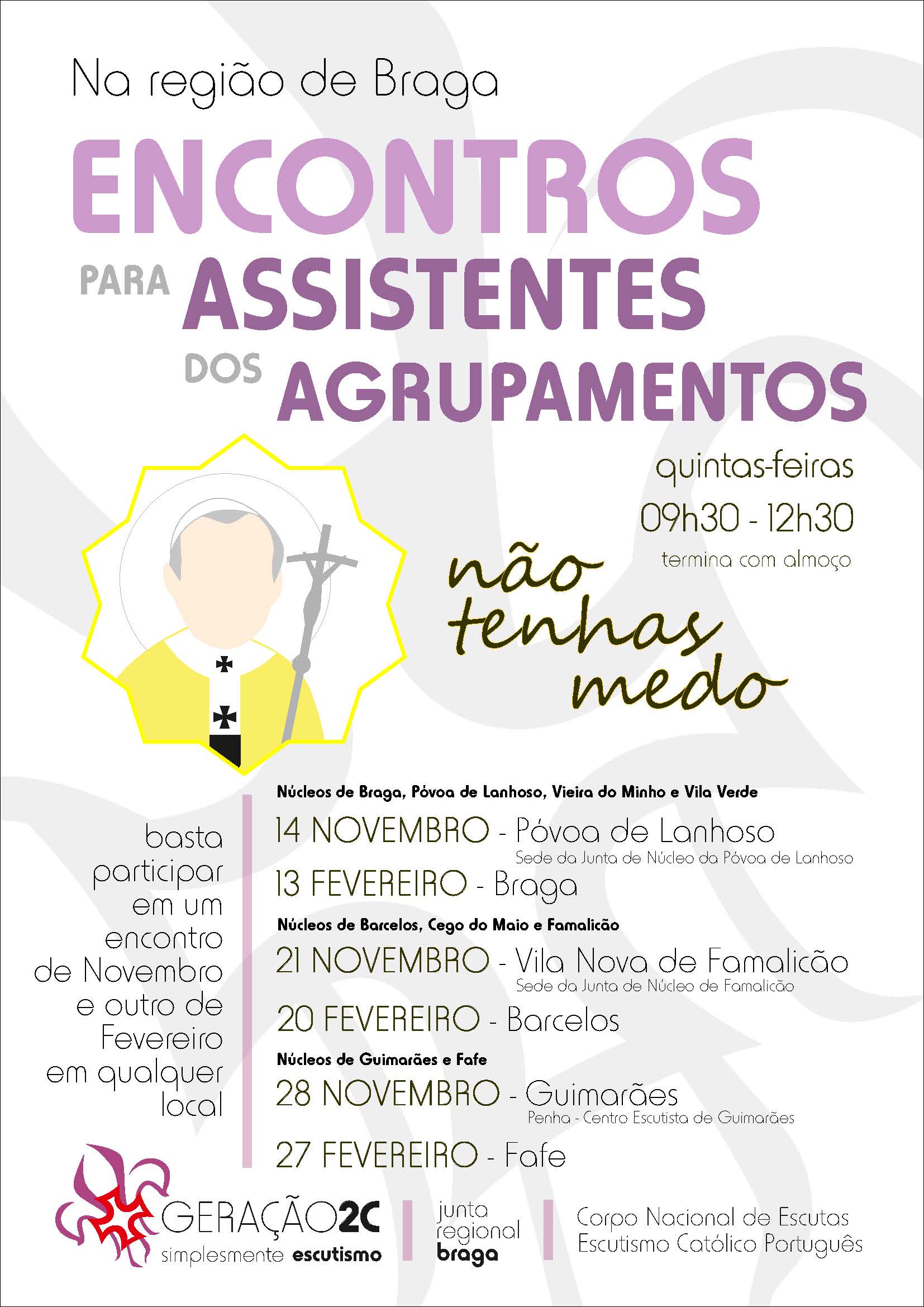 O C.N.E. - Corpo Nacional de Escutas, Região de Braga, pela Equipa da Assistência Regional, promove o 2º Encontro de Formação para todos os Assistentes.