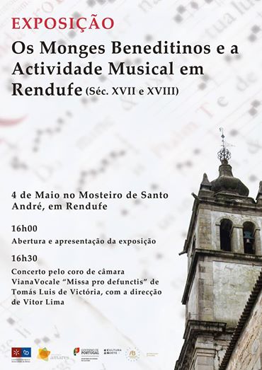 O Mosteiro de Santo André, em Rendufe, acolhe a partir do próximo dia 4 de maio (domingo) uma exposição intitulada “ Os Monges Beneditinos e a Atividade Musical em Rendufe (Séc. XVII e XVIII) ”, realizada no âmbito curricular do Seminário de Estudos Musicológicos pelos alunos do 1º a 2º anos da Licenciatura em Música, com especialização na área de Ciências Musicais, da Universidade do Minho.
