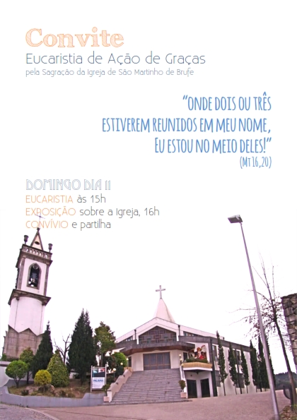 A Comunidade Paroquial de São Martinho de Brufe celebra no domingo, dia 11, as Bodas de Prata da Sagração da Igreja Paroquial. Assim, a paróquia convida todos os “brufenses” e amigos para participarem na Eucaristia que tem início às 15h. No final, será ab
