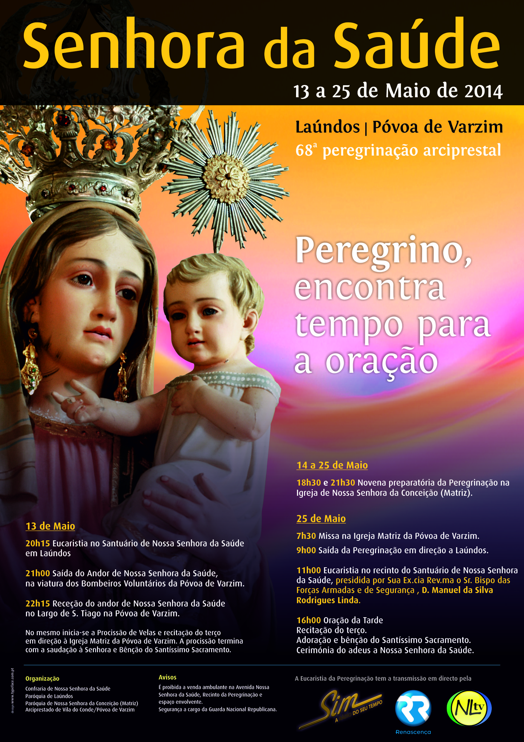 Terá lugar no próximo Domingo, 25 de Maio, a 68ª Peregrinação Arciprestal de Vila Conde e Póvoa de Varzim à Senhora da Saúde. A Eucaristia será presidida por D. Manuel Linda.