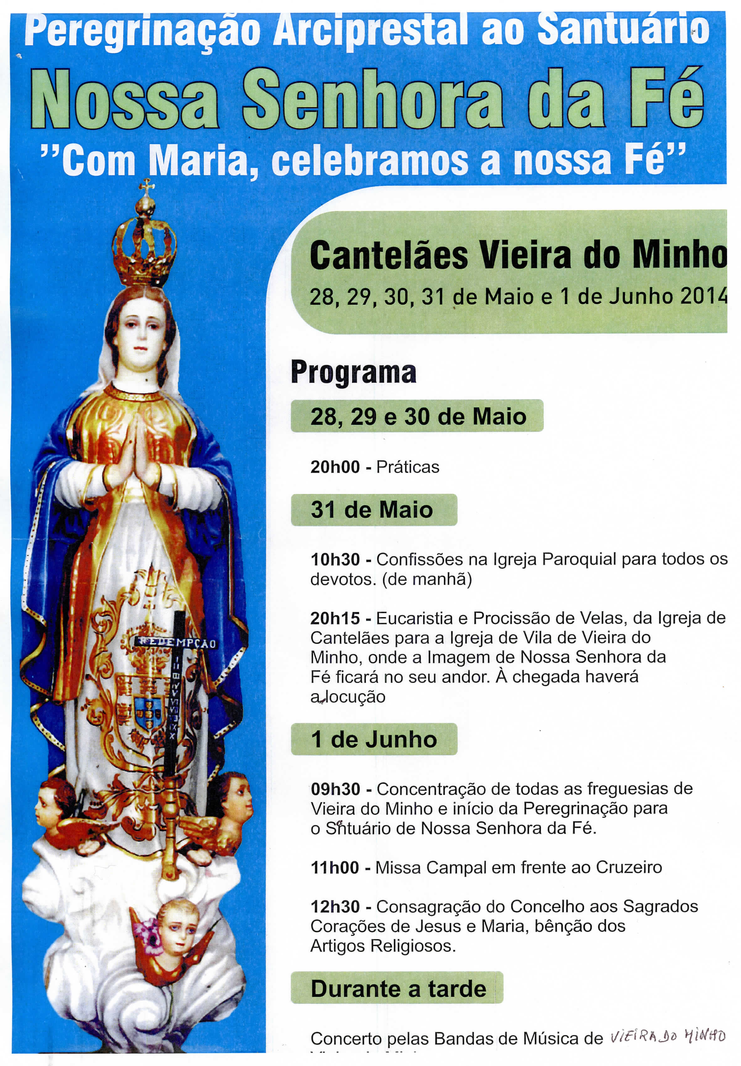 No próximo domingo dia 1 de junho, realiza-se a peregrinação Arciprestal de Vieira do Minho ao Santuário de Nossa Senhora da Fé.