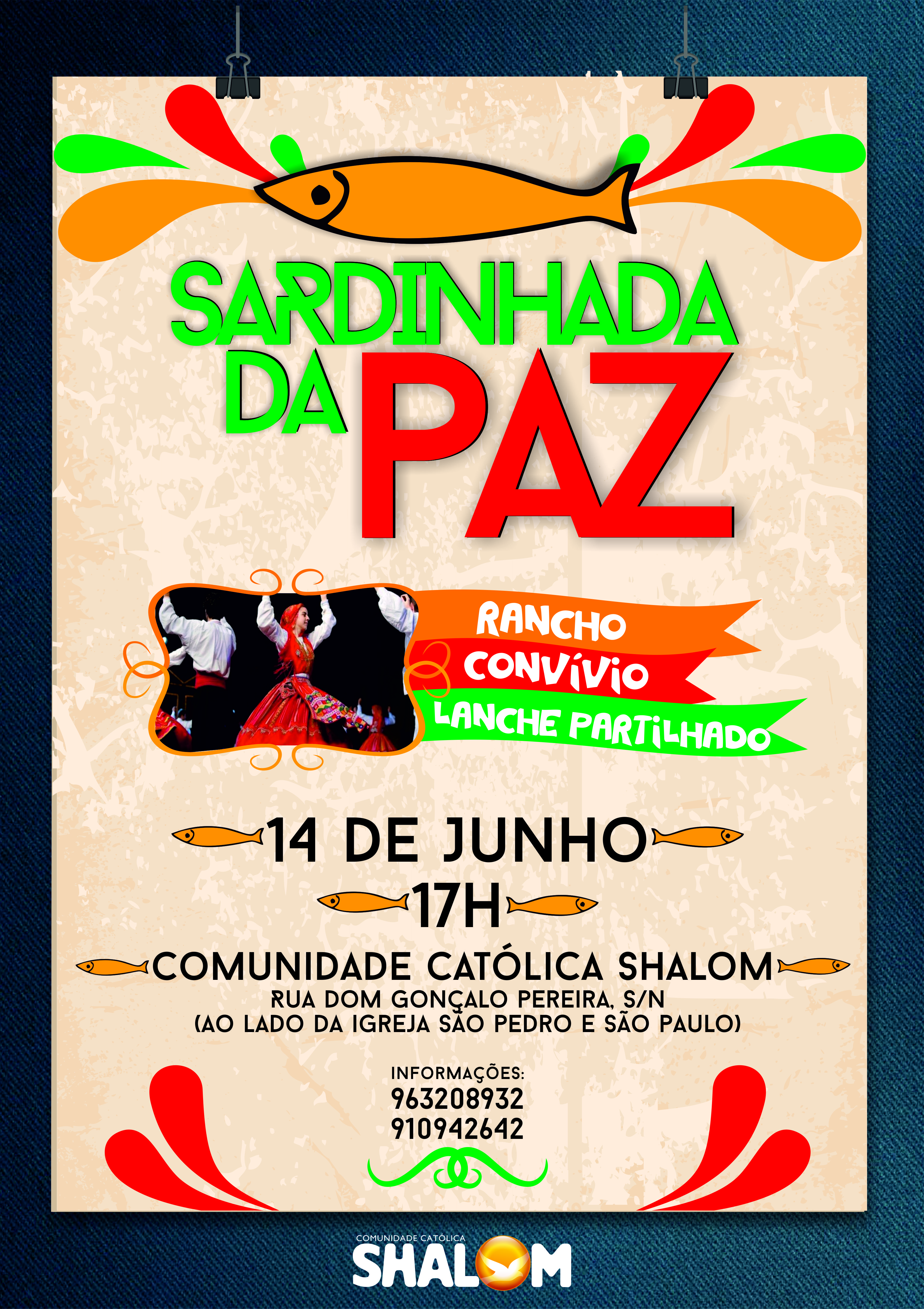 A comunidade Católica Shalom organiza uma sardinhada diferente, a decorrer no próximo sábado, com início às 17h, na sede da comunidade (Rua D. Gonçalo Pereira, junto à igreja do Seminário Conciliar de Braga).