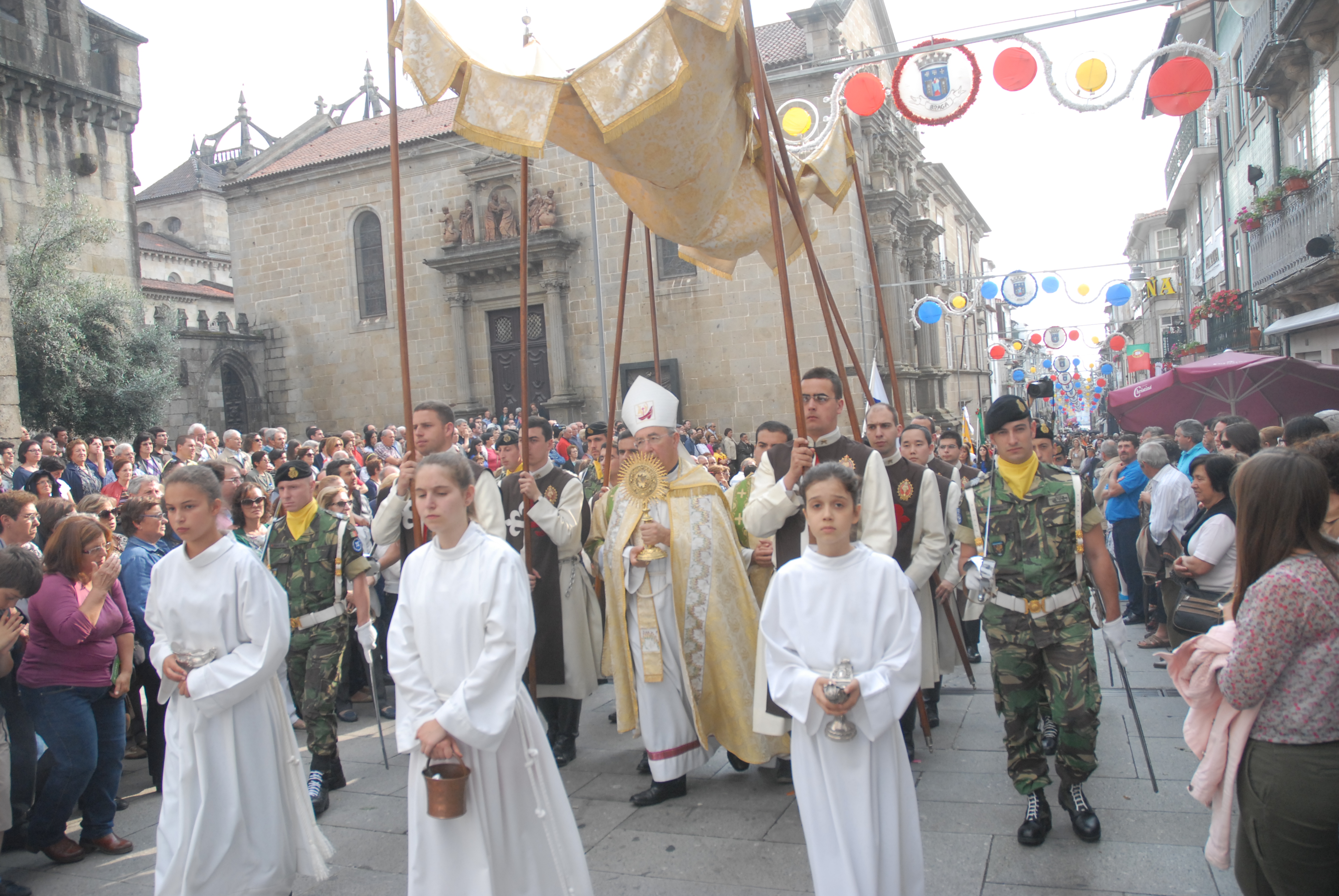 A procissão foi organizada a partir da Catedral, fechando com o andor de São João, acompanhado pelo Coro das Virgens, uma tradição recuperada pelo grupo de Esporões, que fechou o vasto conjunto de centenas de figurantes (anjinhos) que engrandeceram o desfile religioso, que finalizava com os militares do RC6, os guardas da Catedral transportando os símbolos da Sé, padres e cónegos e D. Jorge Ortiga, que levou o Santo Lenho pelas ruas.