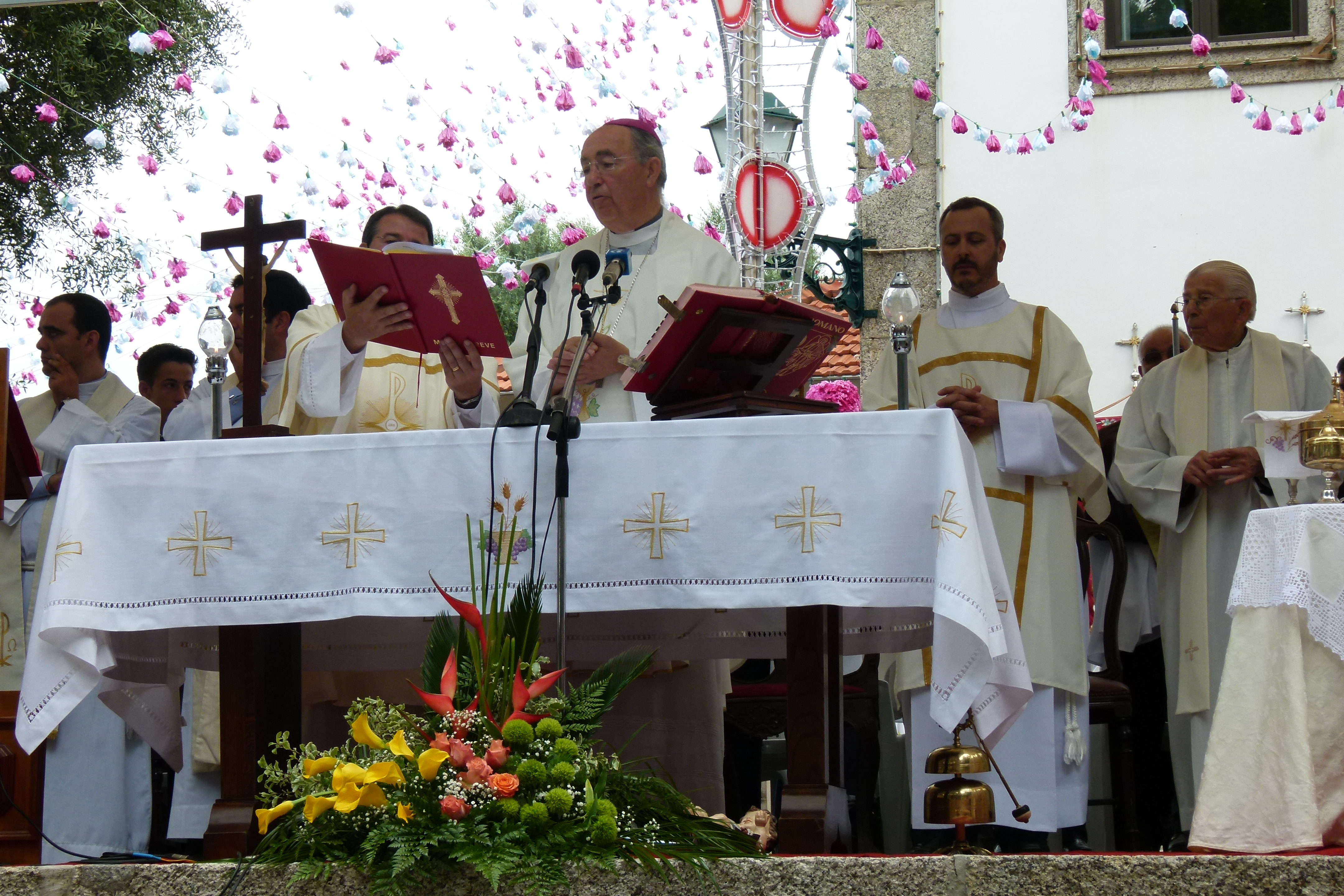 À chegada ao recinto do Santuário foi celebrada uma missa campal, às 11h00, presidida pelo Arcebispo Primaz de Braga. Esta celebração, contou ainda com a presença de vários sacerdotes, nomeadamente do Arcipreste de V. N. Famalicão, o P.e Paulino Carvalho, e do pároco de Lemenhe, o P.e António Loureiro, assim como de algumas entidades civis, como foi o caso do Presidente da Câmara de V. N. Famalicão, Paulo Cunha.