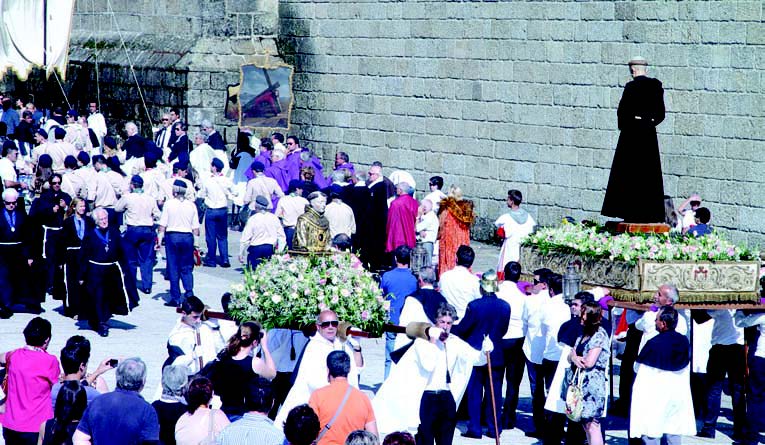 Com S. Pedro a ajudar os crentes à incorporação na procissão – a manhã cinzenta deu lugar a uma tarde de sol –, o temple que integra o convento onde se instalou a ordem franciscana foi o palco para a concentração pública da encenação religiosa, que passou em revista os ensinamentos de S. Francisco de Assis. A igreja franciscana foi também, a meio da manhã, o espaço onde foi celebrada a eucaristia que solenizou as cerimónias religiosas do programa official das Gualterianas.