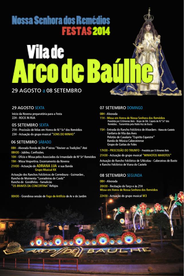 Prosseguem de 5 a 8 de Setembro as Festas em honra de Nossa Senhora dos Remédios na paróquia de S. Martinho de Arco de Baúlhe, Arciprestado de Cabeceiras de Basto.
