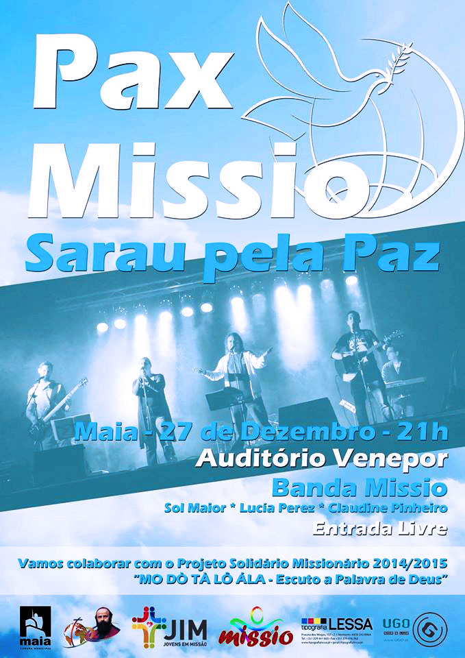 O Sarau “Pax Missio” é organizado em torno de três vertentes distintas. Além da apresentação do CD da banda “Missio”, “conTigo”, que conta com a presença de vários convidados, decorre a apresentação e angariação de fundos para o projecto solidário JIM. O evento, pretende, igualmente, ser uma forma de sensibilização para a Paz.