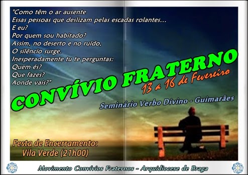 O próximo Convívio Fraterno realiza-se entre os dias 13 e 16 de Fevereiro no Seminário do Verbo Divino, em Guimarães.