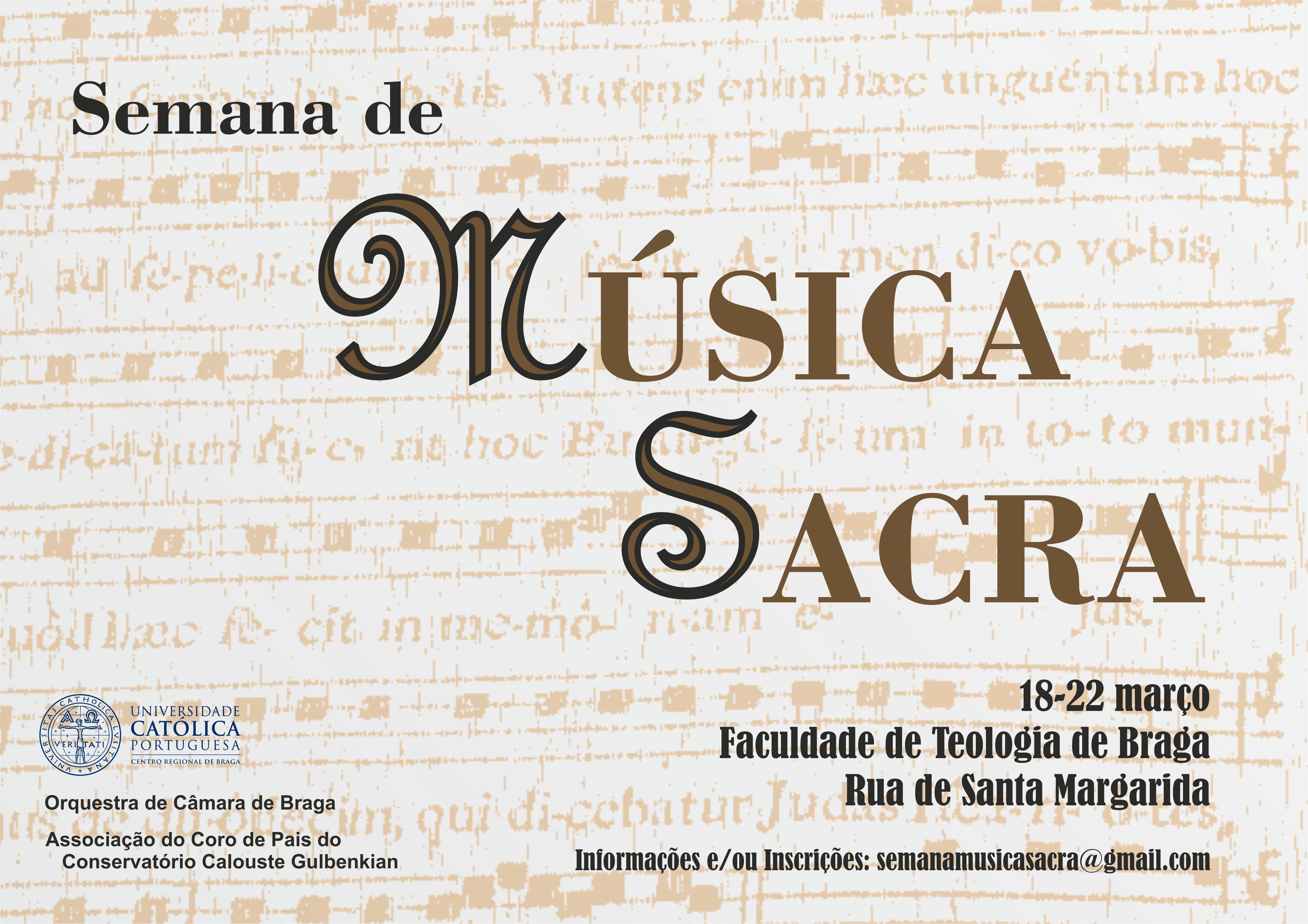 De 18 a 22 de Março decorre na Faculdade de Teologia de Braga a Semana de Música Sacra.