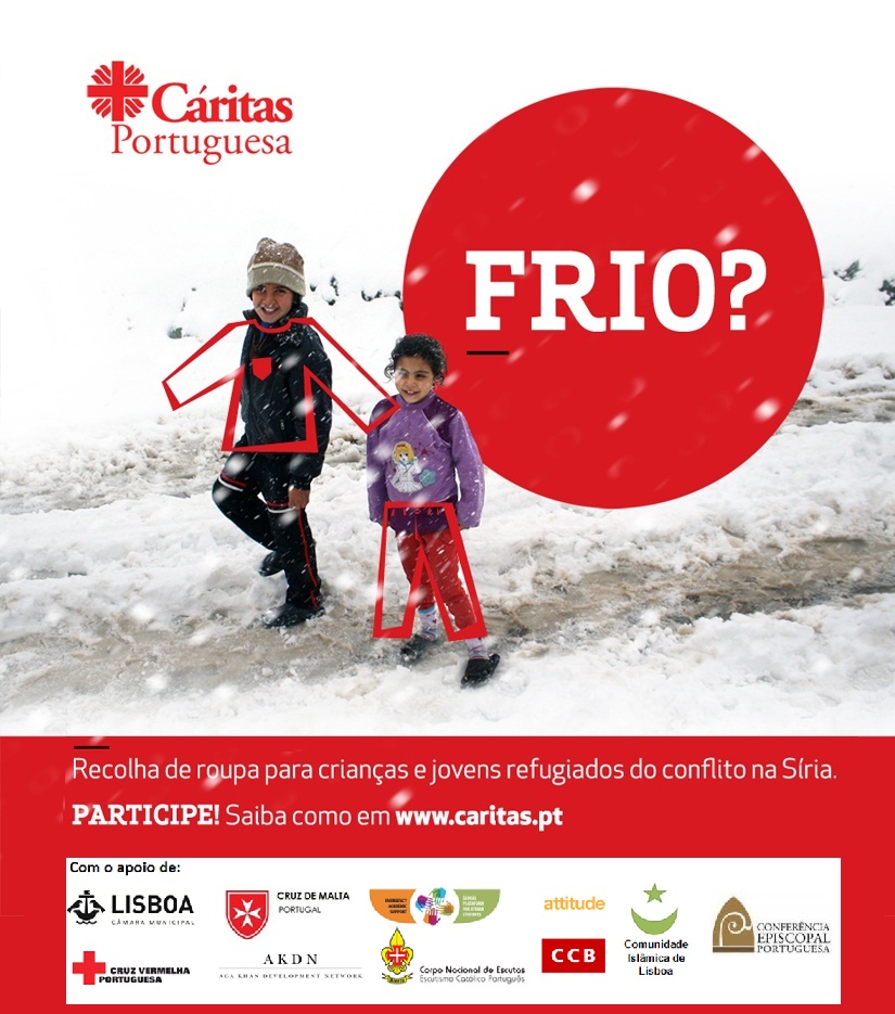 A Cáritas Portuguesa, depois de um apelo feito pelo antigo Alto Representante das Nações Unidas para a Aliança das Civilizações, Jorge Sampaio, está a organizar uma campanha de recolha de roupa quente para enviar para as crianças sírias refugiadas nos países vizinhos da Síria.