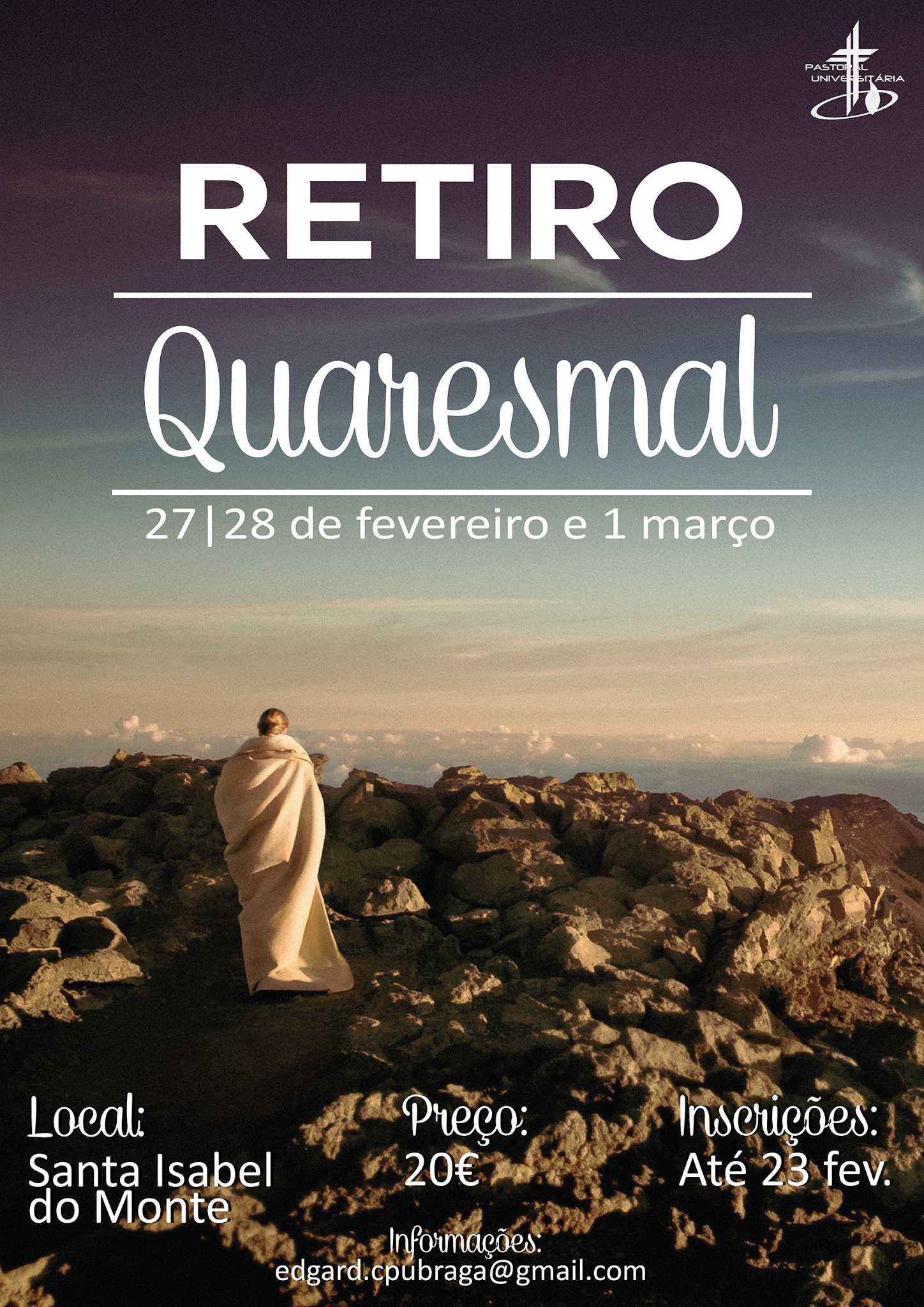 A Pastoral Universitária, tendo por objectivo proporcionar um fim-de-semana diferente durante a Quaresma, longe da agitação e do stress do dia-a-dia, está a organizar um retiro a ter lugar em Santa Isabel do Monte.