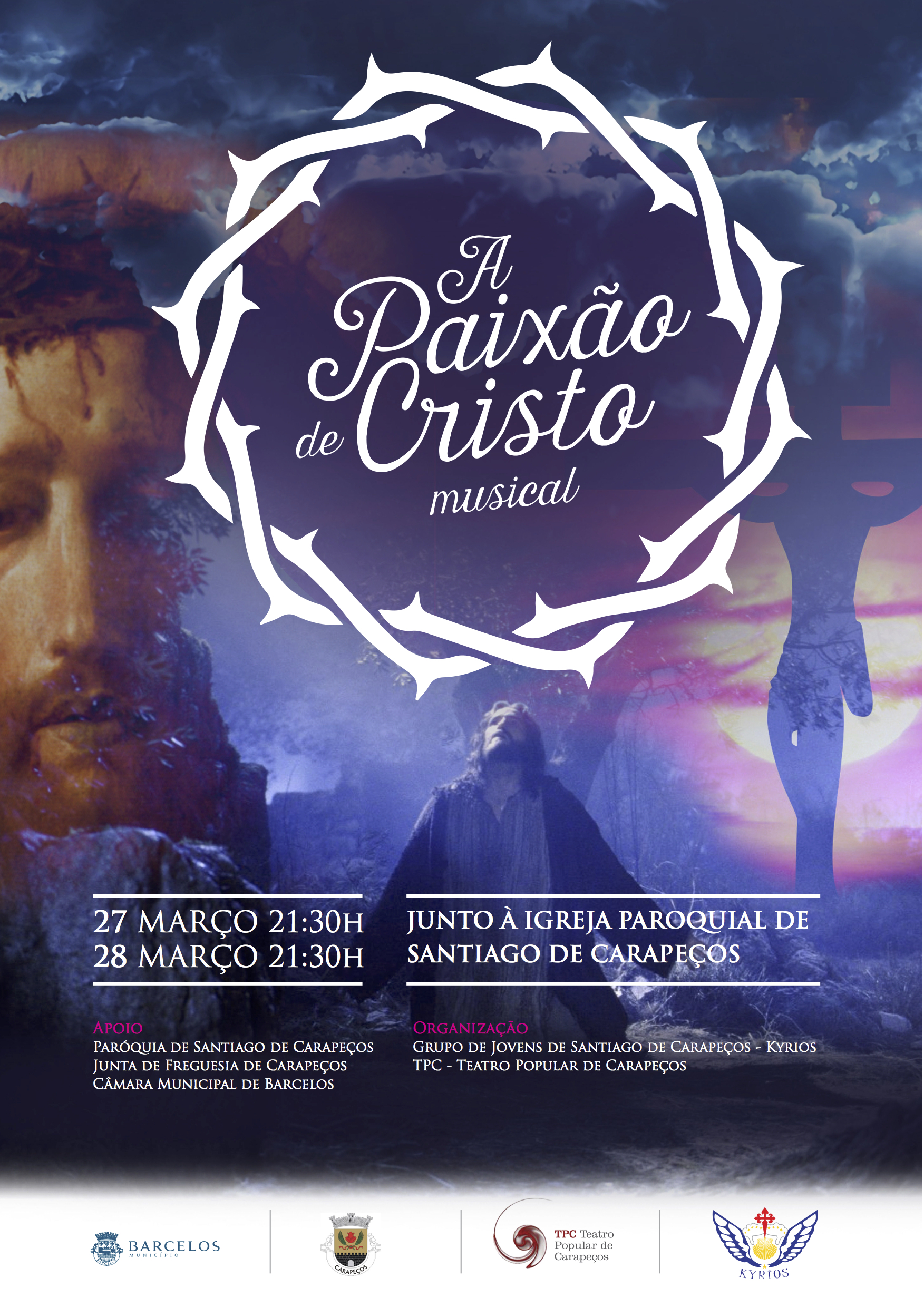 O espectáculo decorre nos dias 27 e 28 de Março, pelas 21h30, junto à igreja de Carapeços. Através do teatro e da música são recriadas as principais cenas das últimas horas da vida de Jesus: paixão, morte na cruz e ressurreição.