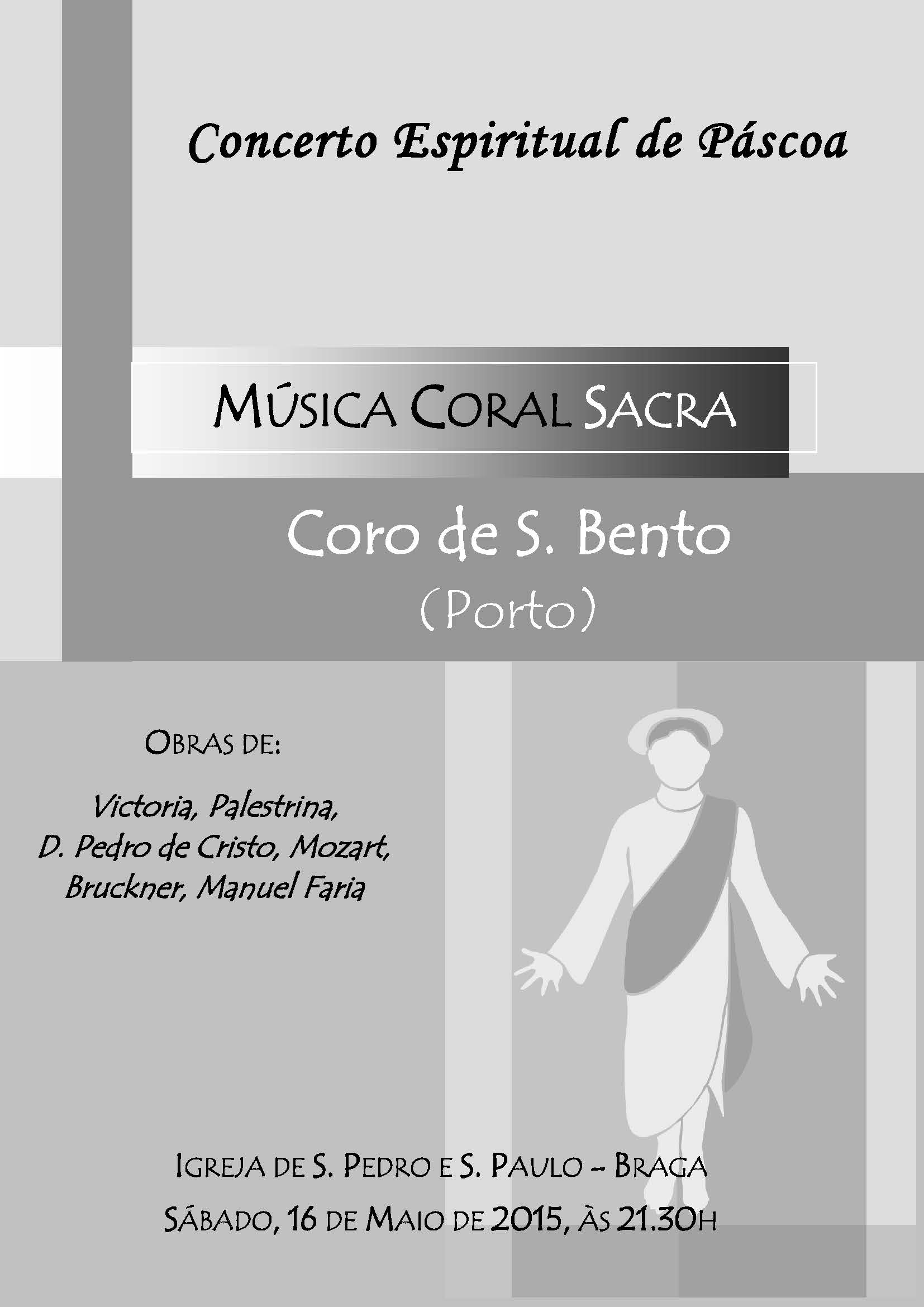 No próximo dia 16 de Maio, pelas 21h30, tem lugar na Igreja de S. Pedro e S. Paulo a apresentação do Concerto Espiritual de Páscoa pelo Coro de S. Bento (Porto).
