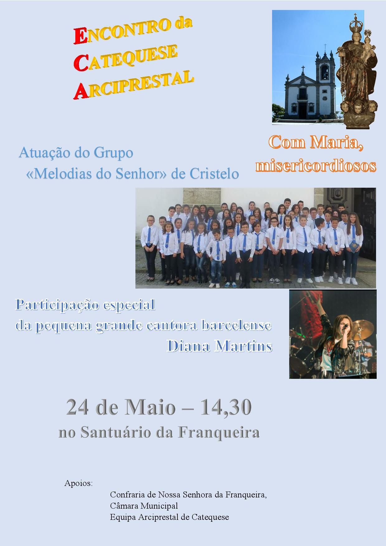 O grupo "Melodias do Senhor", da Paróquia de Cristelo, e a cantora Diana Martins (vencedora do concurso "A tua cara não me é estranha") constituem as figuras de cartaz da segunda parte deste encontro.