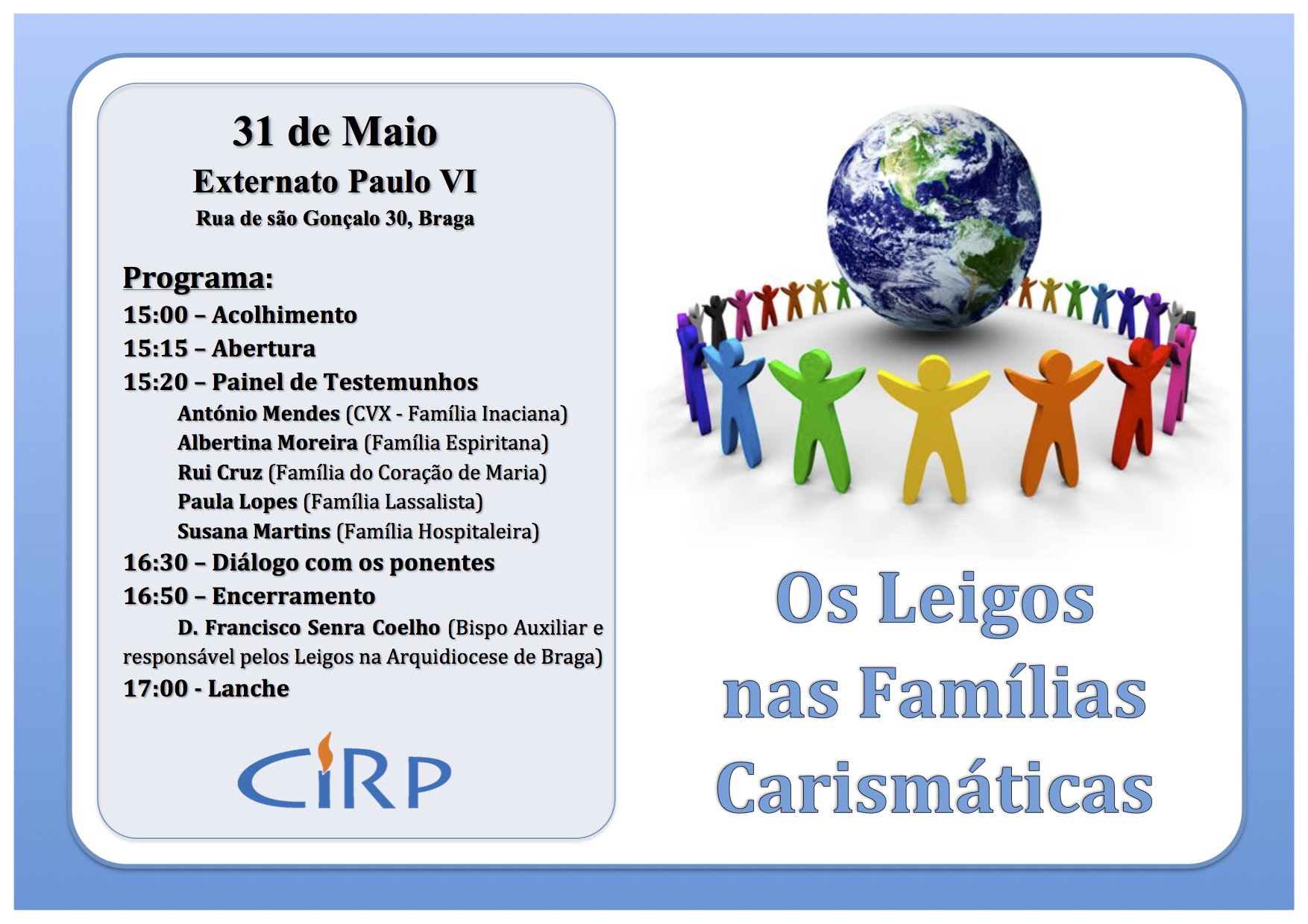 No dia 31 de maio realiza-se um encontro de Leigos e Consagrados das diferentes famílias carismáticas no auditório do Externato Paulo VI.