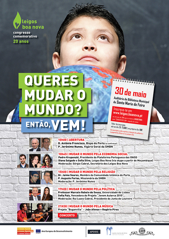 No presente ano de 2015, designado pela União Europeia como Ano Europeu para o Desenvolvimento, os Leigos Boa Nova (LBN) celebram os seus 20 anos de actividade missionária. É neste contexto que se enquadra a realização do congresso intitulado "Queres mudar o mundo? Então vem!", que decorre na Biblioteca Municipal de Santa Maria da Feira no próximo dia 30 de Maio.