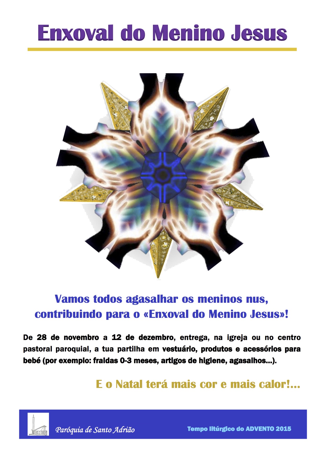 "Assumimos em comunidade o compromisso de agasalhar os meninos nus, e assim, o Natal terá mais cor e mais calor!... Neste ano pastoral da Fé Anunciada, está nas nossas mãos ajudar quem mais precisa: «Assim como Eu fiz, fazei vós também»", explicou o Pe. Domingos Paulo, pároco de Santo Adrião.