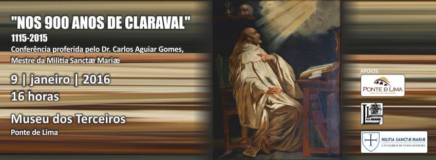 Realiza-se no próximo Sábado, dia 9 de Janeiro, no Museu dos Terceiros, em Ponte de Lima, a conferência: "Nos 900 anos de Claraval, 1115-2015", que pretende assinalar a fundação do Mosteiro de Claraval, por S. Bernardo. A conferência será proferida por Carlos Aguiar Gomes, Mestre da Militia Sanctae Mariae.