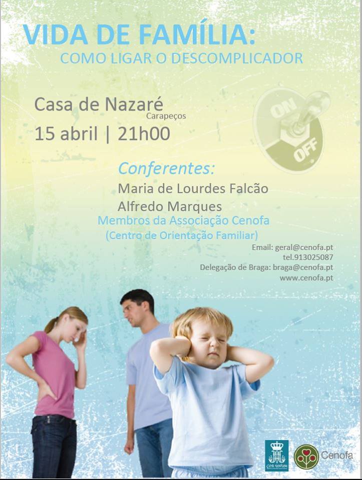 Na próxima Sexta-feira, dia 15 de Abril, decorre uma conferência sobre a família na Casa de Nazaré, em Carapeços, Barcelos. “Vida de família: como ligar o descomplicador” é o tema da conferência cuja hora de início está marcada para as 21h.
