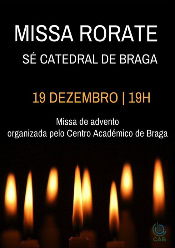 A Sé de Braga vai acolher uma celebração especial de Advento — “Missa Rorate” —, promovida pelo Centro Académico de Braga (CAB), na próxima Terça-feira, dia 19 de Dezembro, às 19h.