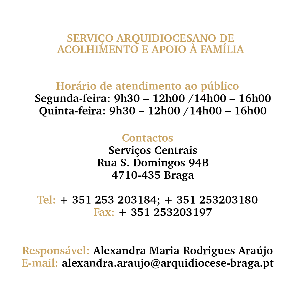 Where required, families will be referred to institutions - partners of the Archdiocese - that are associated with this initiative. For now, the Service is located in Braga, but the Archdiocese is considering extending it to other deaneries if needed so.