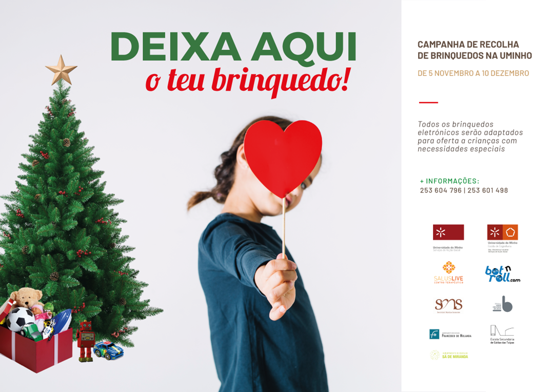 A Universidade do Minho (UM) está mais uma vez a recolher brinquedos, com o intuito de contribuir para fazer sorrir quem mais precisa, seja esse alguém uma criança carenciada ou uma criança com necessidades especiais. Quem quiser contribuir pode fazê-lo até 10 de Dezembro.