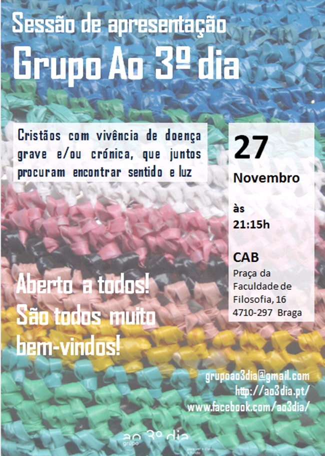 O grupo "Ao 3º dia" vai apresentar-se em Braga no dia 27 de Novembro, às 21h15, numa sessão que decorre no Centro Académico de Braga.