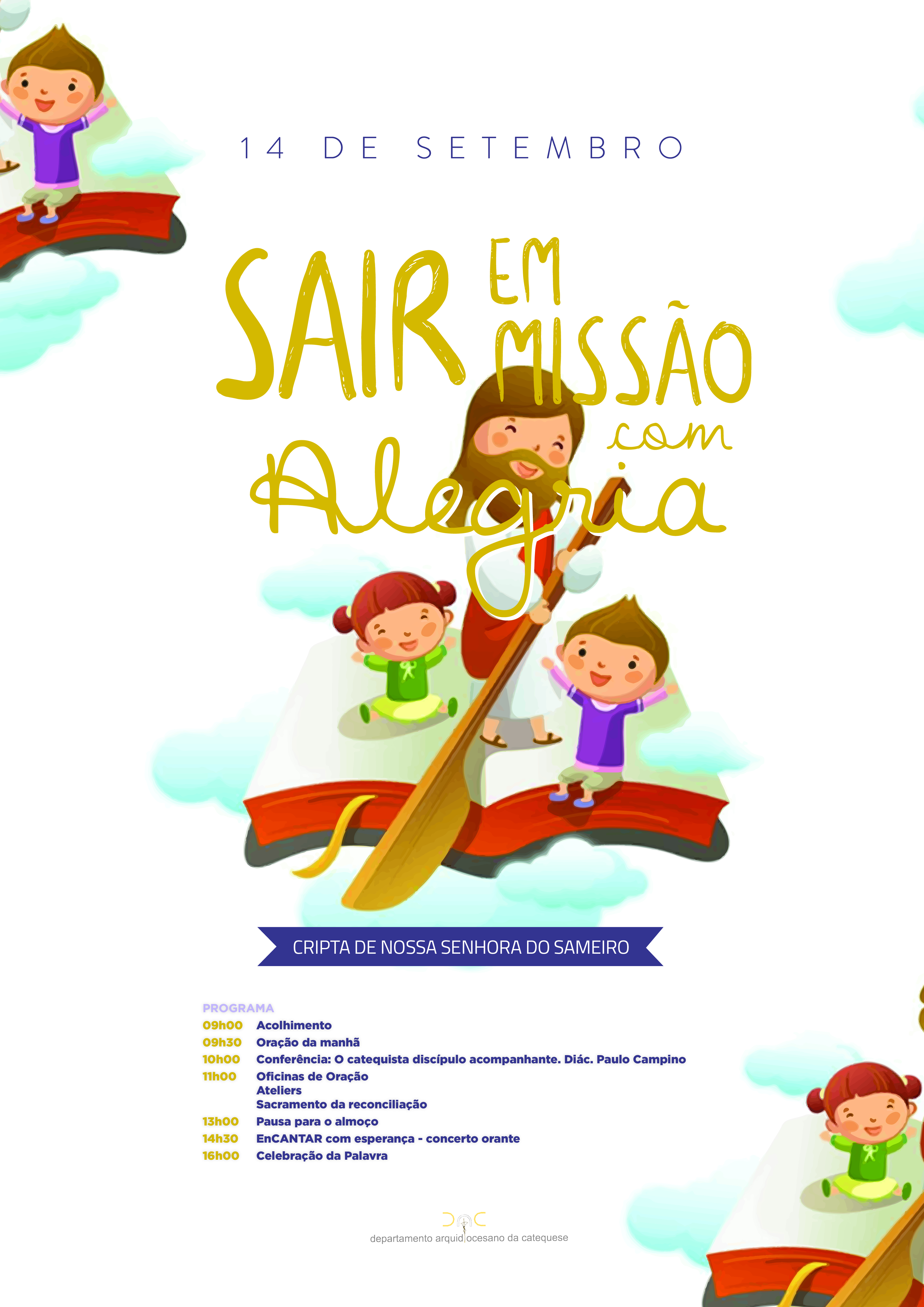 O Departamento Arquidiocesano da Catequese está a organizar o Dia Arquidiocesano do Catequista de 2019. Este ano a iniciativa, com o lema "Sair em Missão com Alegria", tem lugar no dia 14 de Setembro, Sábado, na cripta de Nossa Senhora do Sameiro.
