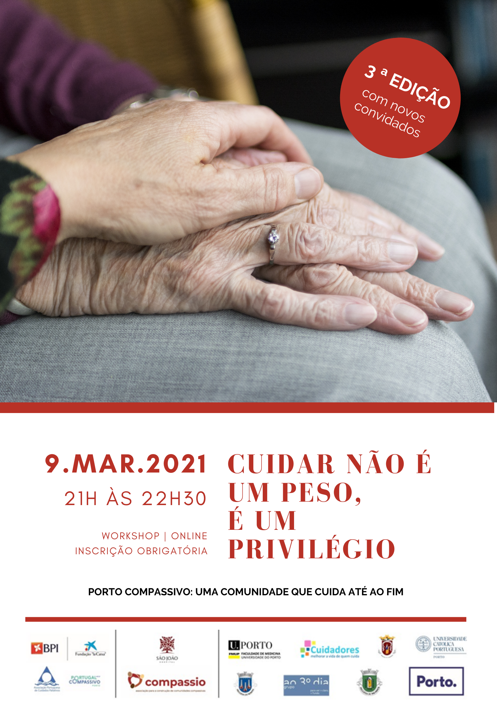 A Compassio - Associação para a construção de comunidades compassivas irá dinamizar no dia 9 de Março, às 21h00, um workshop online intitulado "Cuidar não é um peso, é um privilégio".