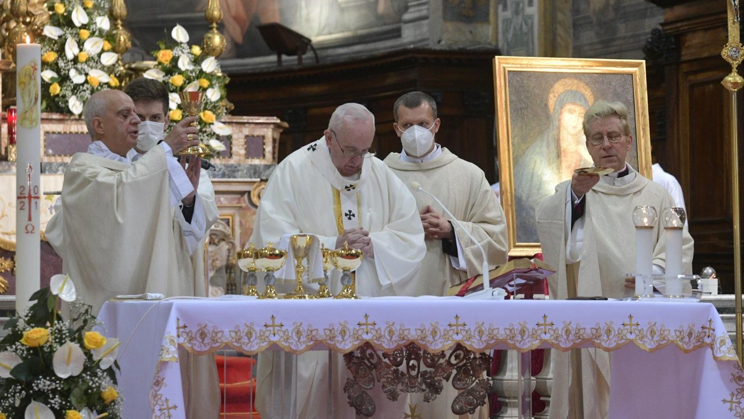 O pontífice recorreu ao episódio bíblico da aparição de Jesus ressuscitado aos seus discípulos, desanimados pela morte do mestre e atemorizados pela perseguição – uma presença que, segundo a Bíblia, mudou as suas vidas e os fez partilhar tudo.