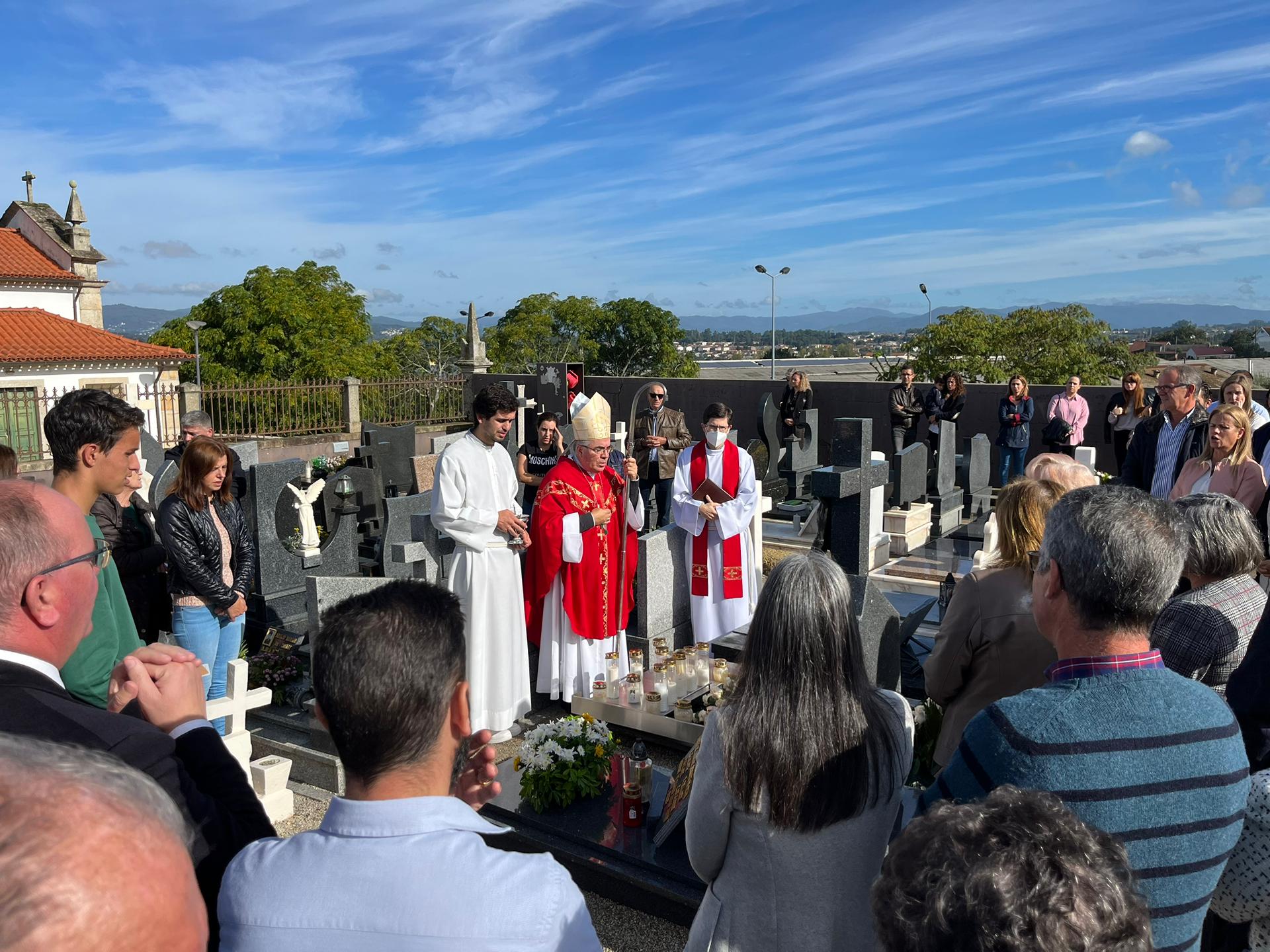 Depois da Eucaristia, o Senhor Bispo Dom Nuno Almeida dirigiu-se ao cemitério paroquial, onde se encontra a campa da menina Elisa.